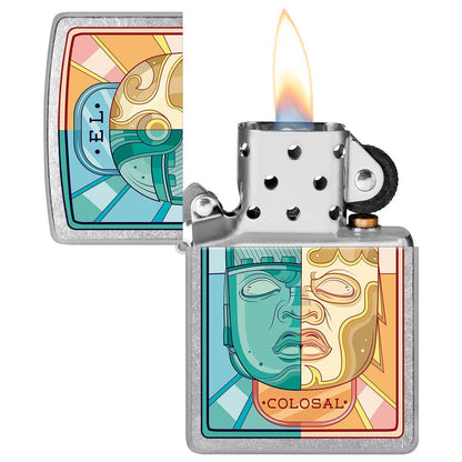 El encendedor Zippo El Colosal es una pieza que rinde homenaje a la grandeza y el legado de las civilizaciones prehispánicas de México. Inspirado en las cabezas colosales de la cultura olmeca, este diseño, ganador del concurso Diseña Tu México 2019, fusiona elementos tradicionales con una estética moderna y vibrante. La imagen presenta una máscara monumental dividida en dos mitades, que representa la dualidad y la riqueza cultural de nuestro país. Los colores vivos y las líneas geométricas evocan la majestuosidad de las civilizaciones antiguas y su profunda conexión con la tierra y el cosmos. Se presenta en una caja de regalo. Para un rendimiento óptimo, llénelo con combustible para encendedores Zippo. Encendedor Zippo original a prueba de viento con su distintivo "clic".