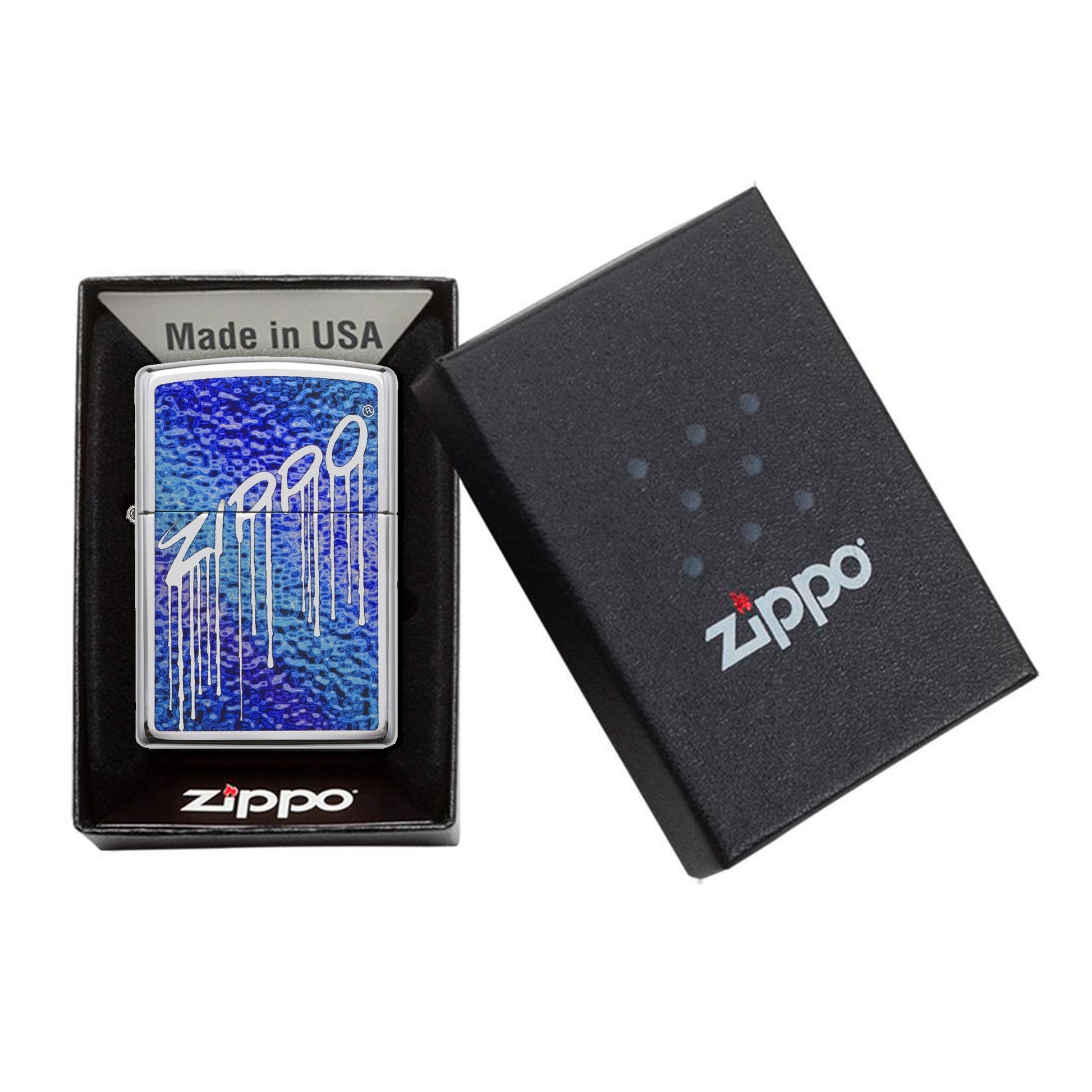 Este encendedor Zippo presenta un diseño único y audaz: letras que parecen fundirse, fusionando arte y funcionalidad en un solo objeto. Su acabado cromado brillante realza una estética moderna y urbana, mientras que su construcción metálica garantiza durabilidad y resistencia. Ideal para quienes buscan un accesorio que combine estilo y practicidad. Viene en una caja de regalo. Para un rendimiento óptimo, llénelo con combustible para encendedores Zippo. Encendedor Zippo original a prueba de viento con el distintivo "clic" de Zippo.