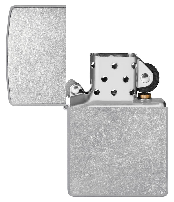 Introduced in 2001, the Street Chrome™ lighter has a random 'distressed' look, giving the lighter a pocket-worn look even when new. The entire surface of the lighter, including the sides and bottom, has been tumbled in a special media to replicate the random scuffs and scratches of a beloved, well-used lighter.
